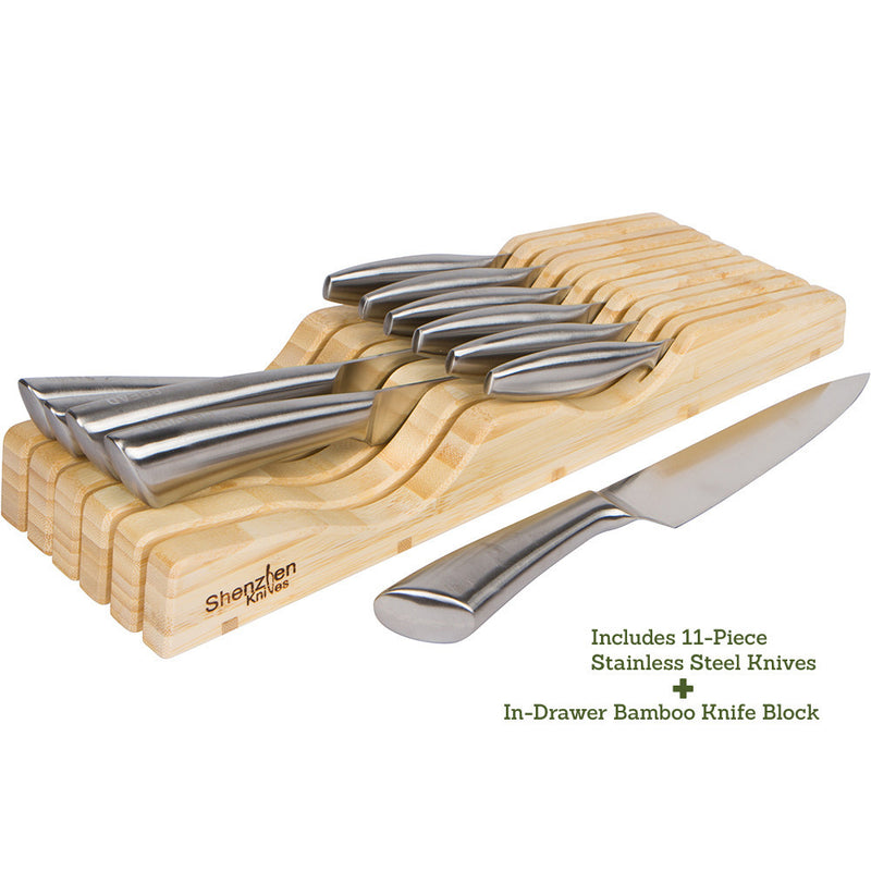 11 Piece Stainless Steel Kitchen Knife Set With In Drawer Bamboo Block Shenzhen Knives